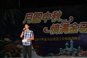 2011年9月13日農(nóng)歷八月十六晚上7:30-9:30,“月圓中秋、情滿金馬”員工中秋追月晚會(huì)以情相聚,在燈籠的點(diǎn)點(diǎn)暖光中,公司職工及家屬將近600人聚首長江水世界,在滿載金馬濃情的節(jié)目中共度追月良辰。
