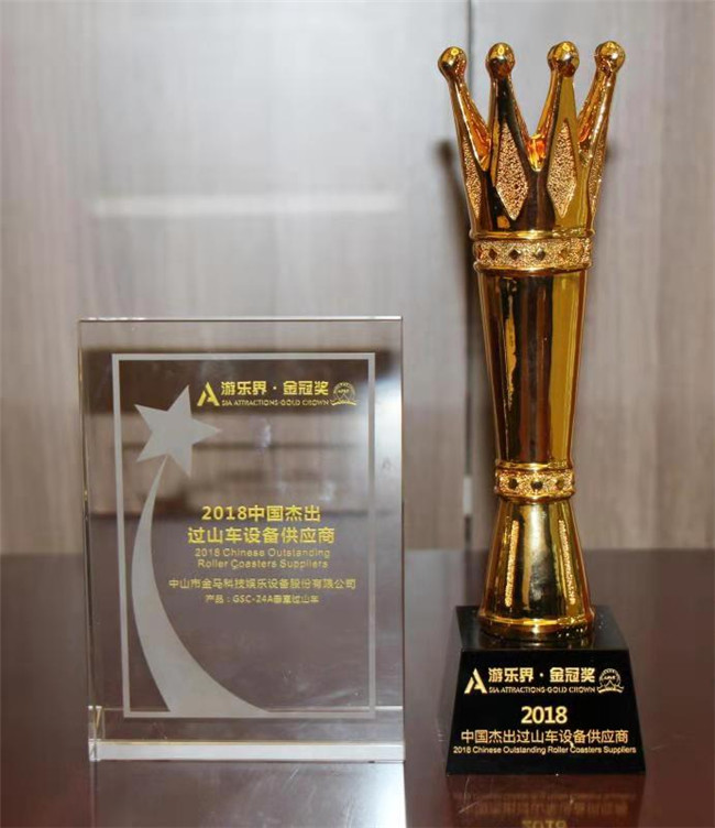 【GSC-24A 垂直過(guò)山車】是中山金馬公司全新推出的大型游樂(lè)設(shè)備,車體提升到軌道最高點(diǎn)后,高空懸停3秒,垂直跌落后列車沿預(yù)設(shè)軌道自由滑行。沿途滑行軌道花樣設(shè)有側(cè)傾,盤旋,直線俯沖,陡峭上升,二次垂直跌落,巖洞穿梭,水上沖浪等多種結(jié)合,憑借該新型設(shè)備的創(chuàng)新設(shè)計(jì)和全新體驗(yàn),中山金馬公司獲得了游樂(lè)界·金冠獎(jiǎng)“中國(guó)杰出過(guò)山車設(shè)備供應(yīng)商”榮譽(yù)獎(jiǎng)項(xiàng)。