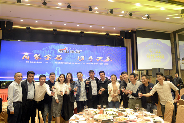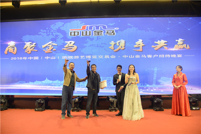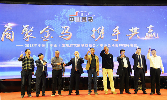 11月28日,時(shí)值第十一屆中國(guó)(中山)國(guó)際游戲游藝博覽交易會(huì)行業(yè)盛會(huì)召開之際,中山金馬公司在喜來(lái)登酒店隆重設(shè)宴,精心籌劃了一場(chǎng)“商聚金馬,攜手共贏”的主題晚宴,為遠(yuǎn)道而來(lái)的新老客商朋友、合作伙伴接風(fēng)洗塵,與行業(yè)同仁歡聚一堂,共襄盛會(huì)!