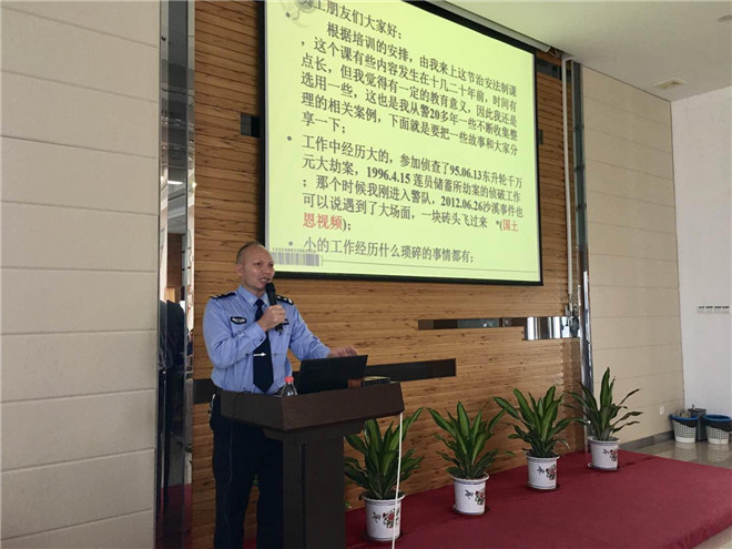 隨后由宏基派出所警官代表為新員工帶來治安法制教育,通過分享其豐富從警生涯中遇到的真實(shí)案件,講述違法犯罪的嚴(yán)重后果,警示新員工嚴(yán)格遵守國(guó)家法律犯規(guī),做合格的守法公民。接下來保安隊(duì)代表結(jié)合公司消防安全規(guī)定,通過講述消防安全的理論和實(shí)際自救與救援方法流程,普及消防知識(shí)和提高新員工消防安全防范意識(shí)。