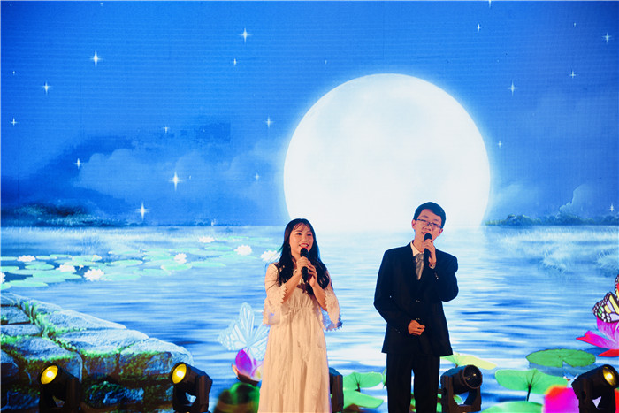 18:30,晚會正式開始。公司董事長鄧總、副總經(jīng)理曾總分別為晚會致辭,他們向全體同事和家屬、以及奮戰(zhàn)在海內(nèi)外現(xiàn)場一線的員工致以節(jié)日的祝賀和美好的祝愿,并鼓勵大家為了金馬公司更美好的明天再接再厲、奮力前行。緊接著是節(jié)目演出環(huán)節(jié),一個個由員工自導(dǎo)自演的精彩節(jié)目陸續(xù)登臺演出,快歌輕盈如溪,慢歌綿長有致,小品張弛有度,舞姿輕盈優(yōu)美。節(jié)目演出期間還穿插了激動人心的有獎競答互動環(huán)節(jié),企業(yè)文化知識與中秋趣味問答相互承接,知識與生活交融,在熱烈歡快的氣氛中,臺上臺下形成一片熱鬧歡快的海洋歌聲,晚會氣氛不斷推向高潮。