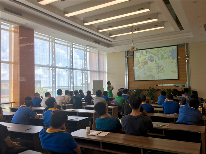 其次,精益部代表以公司員工的優(yōu)秀精益提案為例,生動(dòng)地解釋精益生產(chǎn)的必要性,提倡“全員參與,共創(chuàng)精益”,逐步深化新員工的精益意識(shí)。接著安全委員會(huì)代表通過(guò)分享真實(shí)的案例,結(jié)合公司生產(chǎn)的現(xiàn)實(shí)環(huán)境,學(xué)習(xí)各類(lèi)安全事故的實(shí)際應(yīng)急救援方法,提高新員工的安全防范意識(shí)。