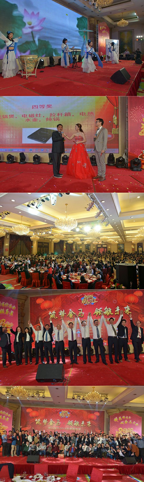 晚會現(xiàn)場,同行云集,燈光璀璨,激情四射的歌舞表演,催人奮進的年度表彰、扣人心弦的幸運抽獎、倍感溫暖的節(jié)日慰問。歡歌笑語中,團結、拼搏、創(chuàng)新的金馬人們展示了金馬團隊積極向上的精神風貌,增強了金馬人的凝聚力和歸屬感,弘揚了金馬企業(yè)精神。就公司在2017年所取得的成績,金馬公司鄧志毅董事長在晚會致辭中表示,“金馬的輝煌成績離不開今天金馬人的團結和努力,2017年是金馬公司保持良好發(fā)展勢頭的一年,是拓展業(yè)務、團隊建設、技術創(chuàng)新取得驕人成績的一年,是金馬全體員工迎接挑戰(zhàn)、經(jīng)受考驗、克服困難、出色完成規(guī)劃的一年。在新的一年來臨之際,我們更應該卯足干勁、攜手同心、再創(chuàng)金馬輝煌”!
