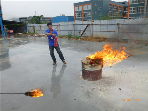 本次培訓由人力資源中心行政部組織,三批次消防演練均安排于日程下午15:45開始,公司一線員工及辦公室人員共110人參加了本次培訓。時間一到,參訓人員列隊完畢后,正式開始培訓,首先進行的是理論部分,行政部義務消防隊指導員保安隊胡副隊長為在場的新員工講解了防火知識、滅火器使用及應急逃生知識。在講解過程中,胡副隊長結(jié)合實際深入淺出,為使學員更好地理解滅火器使用原理,他拿出實物與參訓人員比對參考,為下一部分的實操演練打下了良好的基礎;參加培訓的員工不顧現(xiàn)場下起了小雨,認真地學習思考所講內(nèi)容,有不解之處及時提問,現(xiàn)場氣氛活躍。緊接著,培訓進入實操環(huán)節(jié)。為使所學知識落到實處,公司為每批參加培訓的員工準備了10個滅火器進行明火演練,現(xiàn)場不少員工主動請纓,男同事拿起設備來一拉一噴,架勢十足,女同事滅起火來干凈利落,巾幗不讓須眉。最后,培訓在一片掌聲中圓滿地落下了帷幕。