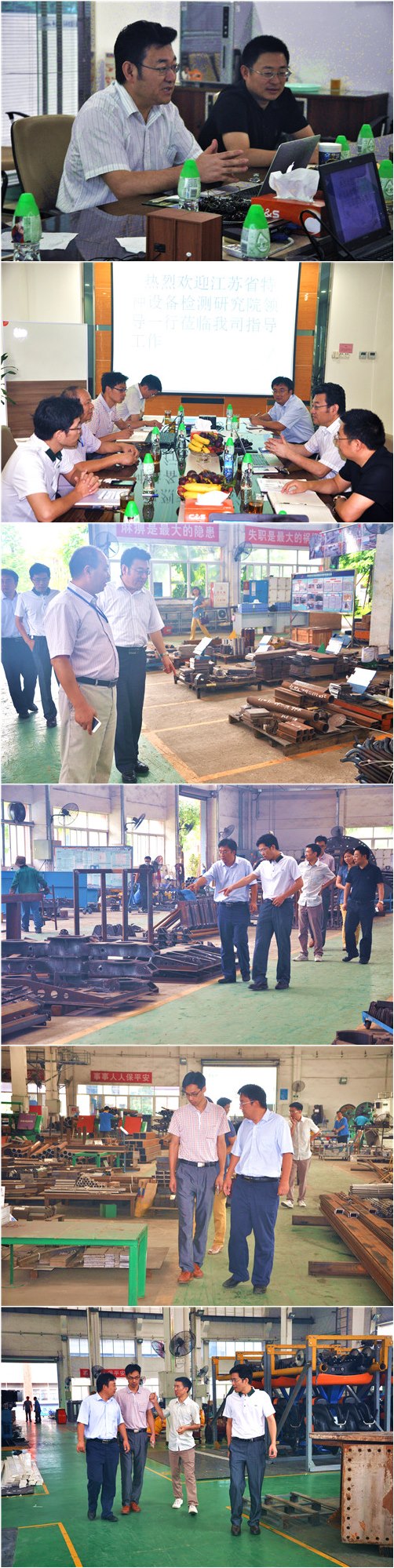 7月10日,為進行特種設備行業(yè)ISO體系與CSG體系合并的調(diào)研,江蘇省特檢院領導李向東副院長、張新東主任,方圓公司金文榮總經(jīng)理等領導蒞臨我司參觀考察,我司高度重視本次活動,公司高層劉總、陳總親自接待了他們。