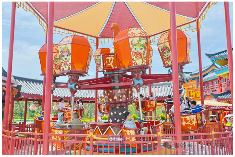 在資陽方特國色春秋中,摩天輪、自控飛機、跳傘塔、太空梭、海盜船等十余款游樂設(shè)備,均由金馬游樂進行主題化外觀定制。憑借規(guī)模領(lǐng)先的專業(yè)技術(shù)團隊與成熟的定制服務體系,金馬從數(shù)字化設(shè)計、建模,到國際水平的工藝制作,全程把控,最終實現(xiàn)藝術(shù)級主題呈現(xiàn),強化設(shè)備與園區(qū)主題環(huán)境的深度融合,營造出高品質(zhì)的沉浸式游樂氛圍。