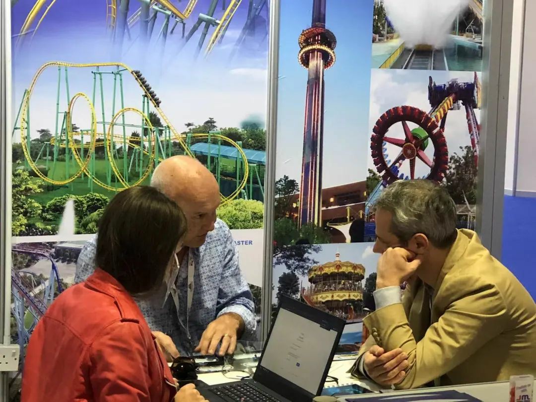 此次迪拜展是新冠疫情以來(lái),金馬游樂(lè)首次參與的國(guó)際展會(huì)。作為國(guó)際頂級(jí)連鎖主題樂(lè)園的游樂(lè)設(shè)備供應(yīng)商,金馬游樂(lè)以“中國(guó)制造”的海外代言人形象亮相國(guó)際展會(huì)。此次展會(huì),由金馬游樂(lè)歐洲團(tuán)隊(duì)攜LSM電磁彈射過(guò)山車(chē)、百米摩天輪、影視飛行塔等多個(gè)系列創(chuàng)新產(chǎn)品亮相,展位吸引了中東、北非地區(qū)多國(guó)客商朋友前來(lái)咨詢交流、洽談合作,現(xiàn)場(chǎng)氣氛熱烈。