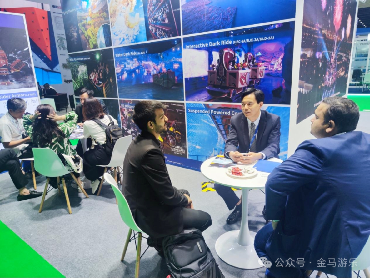 展會(huì)現(xiàn)場(chǎng),公司國(guó)際營(yíng)銷團(tuán)隊(duì)熱情接待前來(lái)觀展的新老朋友,與大家分享金馬游樂(lè)在美國(guó)、德國(guó)、新加坡、巴西、馬來(lái)西亞、越南等國(guó)家落成的最新案例,熱烈交流游樂(lè)設(shè)備最新趨勢(shì)及技術(shù)。眾多國(guó)際客商對(duì)金馬游樂(lè)的創(chuàng)新能力和制造水平表示肯定,并收獲了多項(xiàng)合作意向。