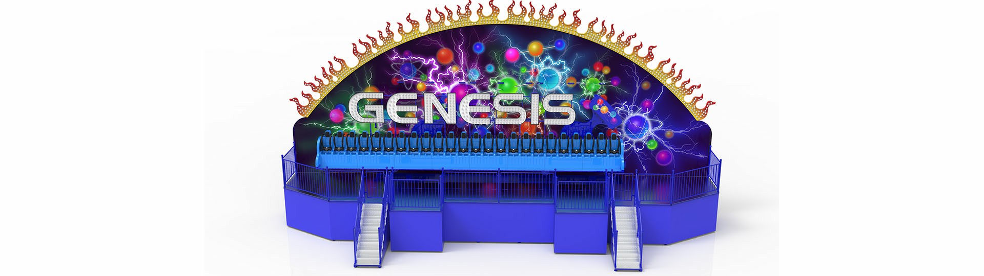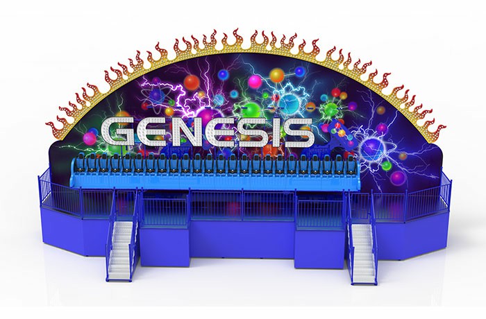 擺臂支撐座艙圓形運動,也可以實現(xiàn)正反兩種通過最高點的運動;占地面積小,外觀造型新穎;