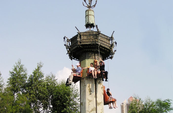 在乘客拉繩操作下快速升、降或停留在半空;快速上升時,因要雙手交替拉繩,使人產(chǎn)生一種攀爬向上的感覺;快速下降時又有高處下落的刺激;老、少咸宜。
