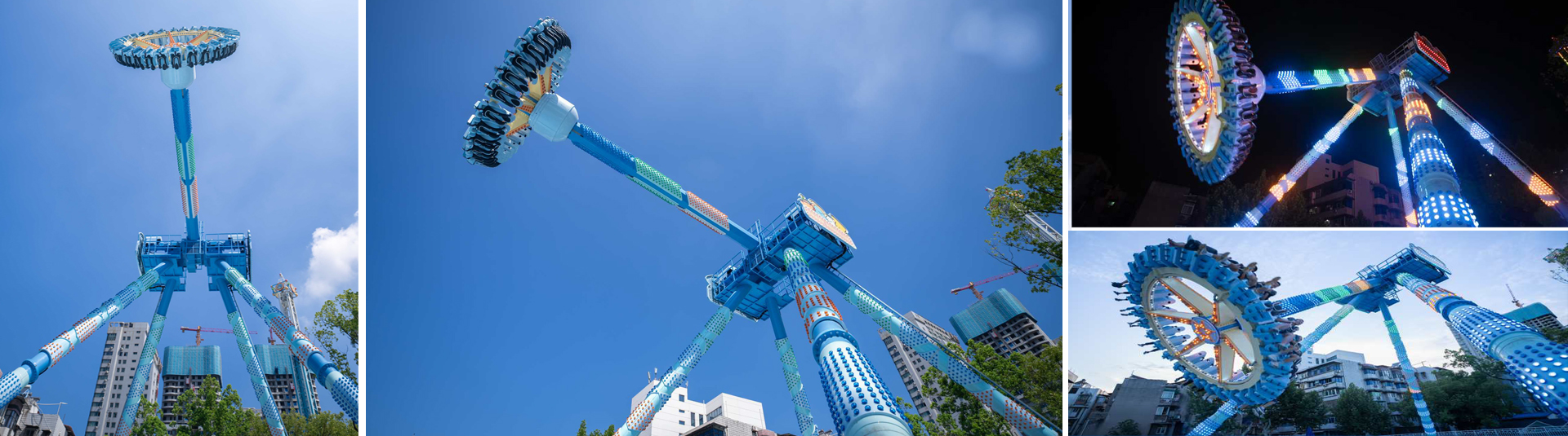 大擺錘設(shè)備結(jié)合擺動(dòng)和旋轉(zhuǎn)兩大運(yùn)動(dòng)形式,乘客在游玩過(guò)程中可體驗(yàn)360°旋轉(zhuǎn)及上升跌落的刺激體驗(yàn)。座椅設(shè)有壓桿裝置和安全帶,具備雙保險(xiǎn)裝置。