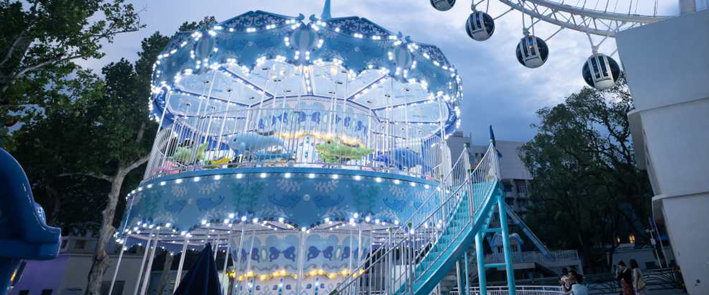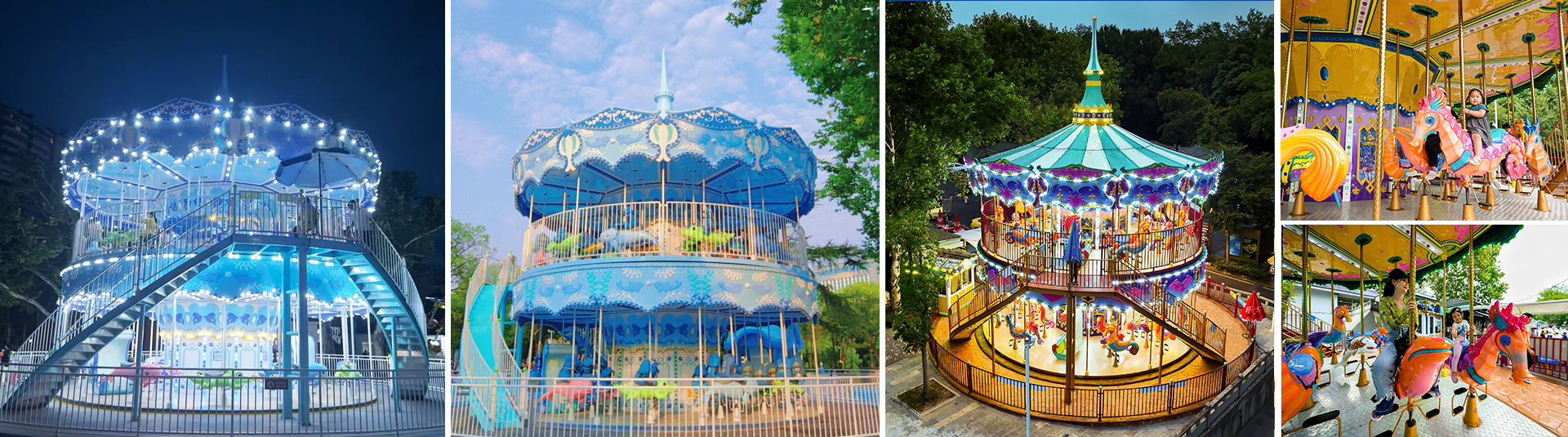 豪華雙層轉(zhuǎn)?是上、下層可單獨作旋轉(zhuǎn)運動的裝飾豪華的轉(zhuǎn)?,采?歐式古典豪華的裝飾?格。蓬頂?shù)幕使诩馑睕_云宵,天花板、內(nèi)圍板鑲嵌著彩?浮雕,并配備彩燈。?匹及宮庭式??結(jié)合多彩的花飾,造型夢幻華麗?碧輝煌。