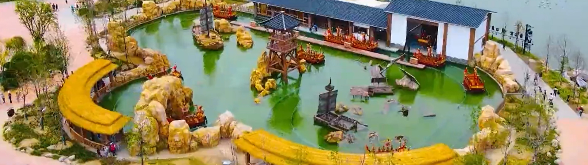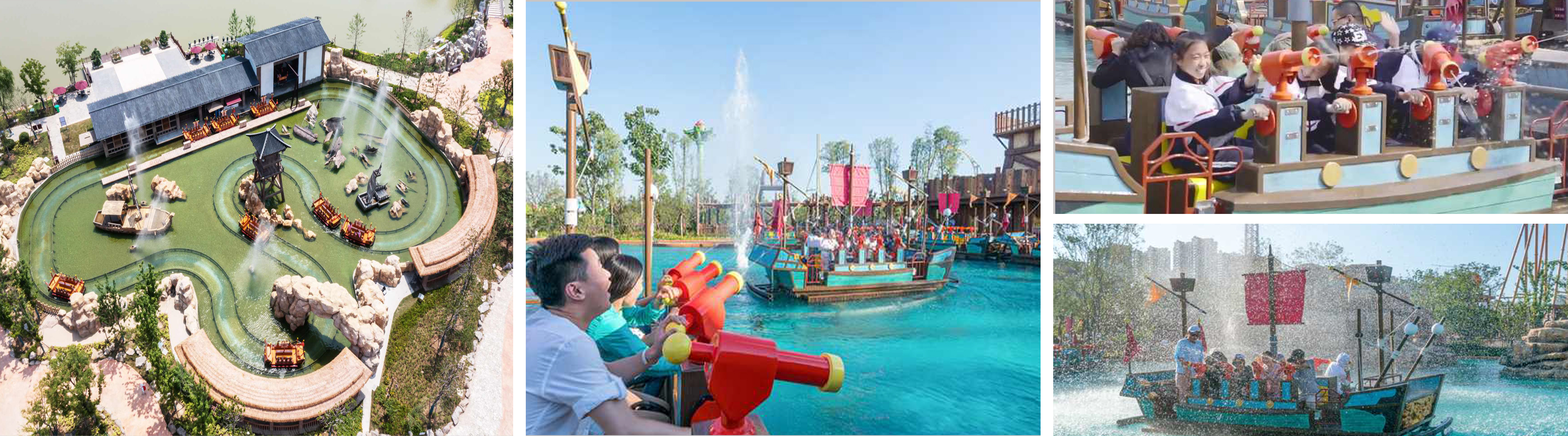 射水戰(zhàn)船是船體自帶超大蓄電池,通過螺旋槳推動船體運行。乘客在乘坐戰(zhàn)船過程中可使用射水槍向其它戰(zhàn)船上的乘客進行射水,也可與周邊游客進行射擊互動??啥ㄖ苽€性化主題造景,增強互動效果。