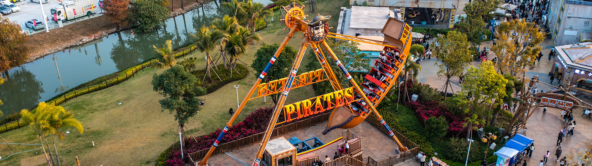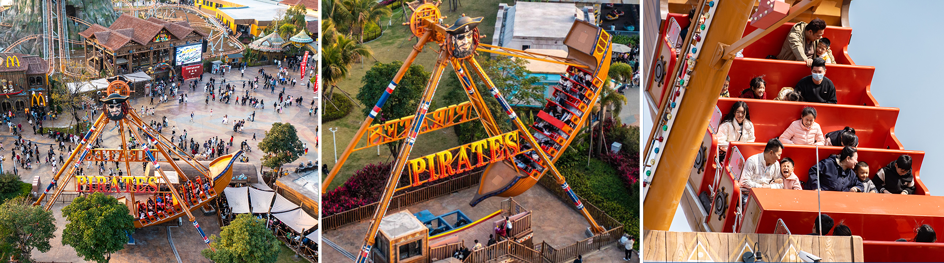 海盜船繞?平軸來回?cái)[動,模擬海盜乘?出海的場景,交替??的失重和超重感讓乘客盡情體驗(yàn)搖擺的樂趣。