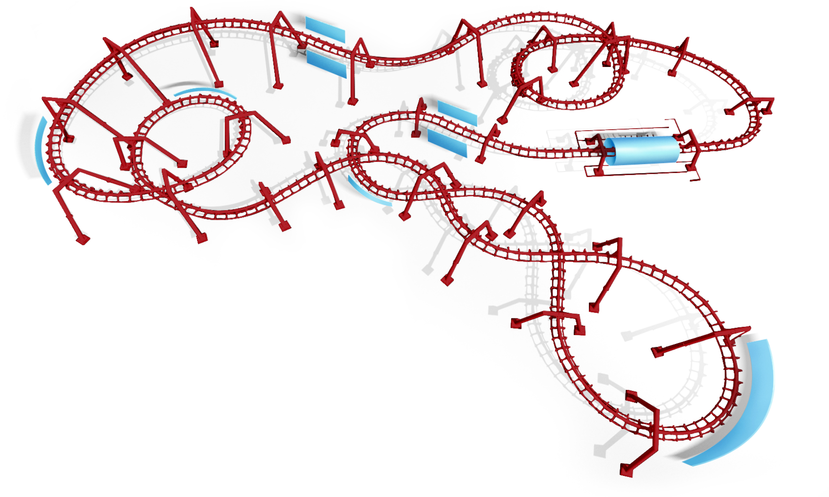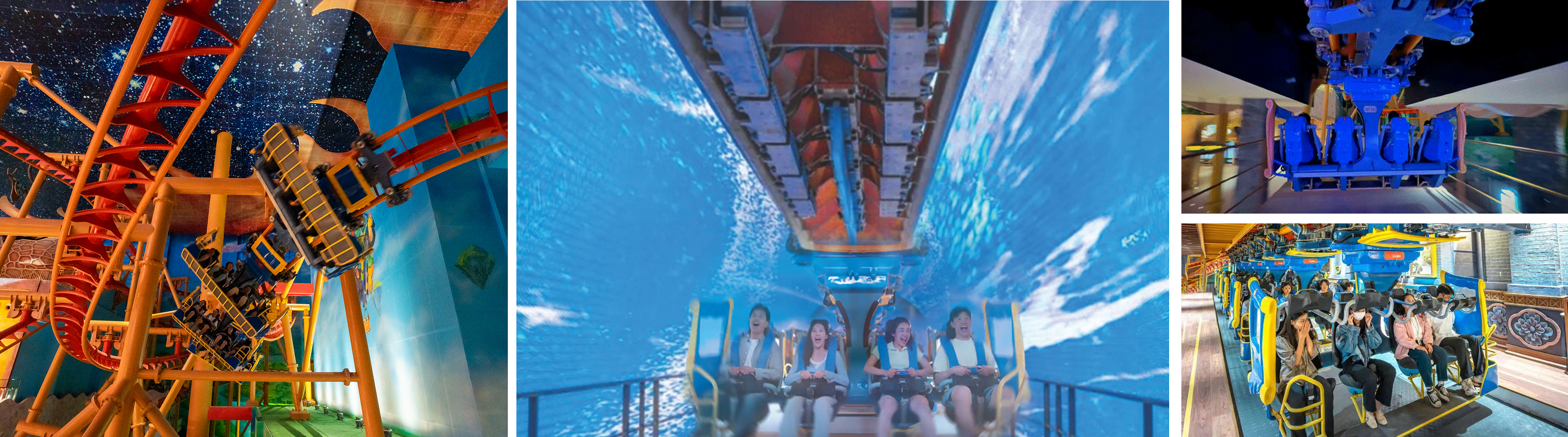 自帶動(dòng)力的懸掛式過(guò)山車(chē)實(shí)現(xiàn)了在軌道任意位置變換速度,時(shí)速可高達(dá) 32km/h,在高清電影、科技特效的影視相融合下,使乘客完全沉浸在游戲的樂(lè)趣和刺激中。