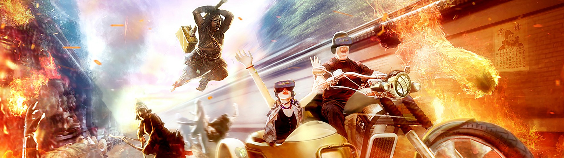 國(guó)內(nèi)首創(chuàng)的乘騎式VR動(dòng)感影院,乘客佩戴VR頭盔坐在三自由度動(dòng)感摩托車上,車體將根據(jù)故事情節(jié)的發(fā)展作出相應(yīng)的升降、仰俯、擺動(dòng)等動(dòng)作,配合逼真的環(huán)境特效,讓乘客在虛擬的世界中無(wú)限探索,刺激感大大提升