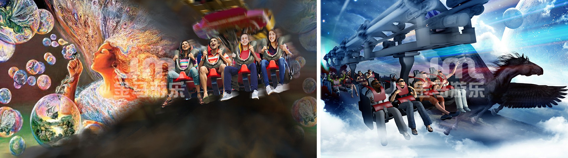 自帶動力的懸掛式過山車實(shí)現(xiàn)了在軌道任意位置變換速度,時速可高達(dá)32km/h,在高清電影、科技特效的影視相融合下,使乘客完全沉浸在游戲的樂趣和刺激中