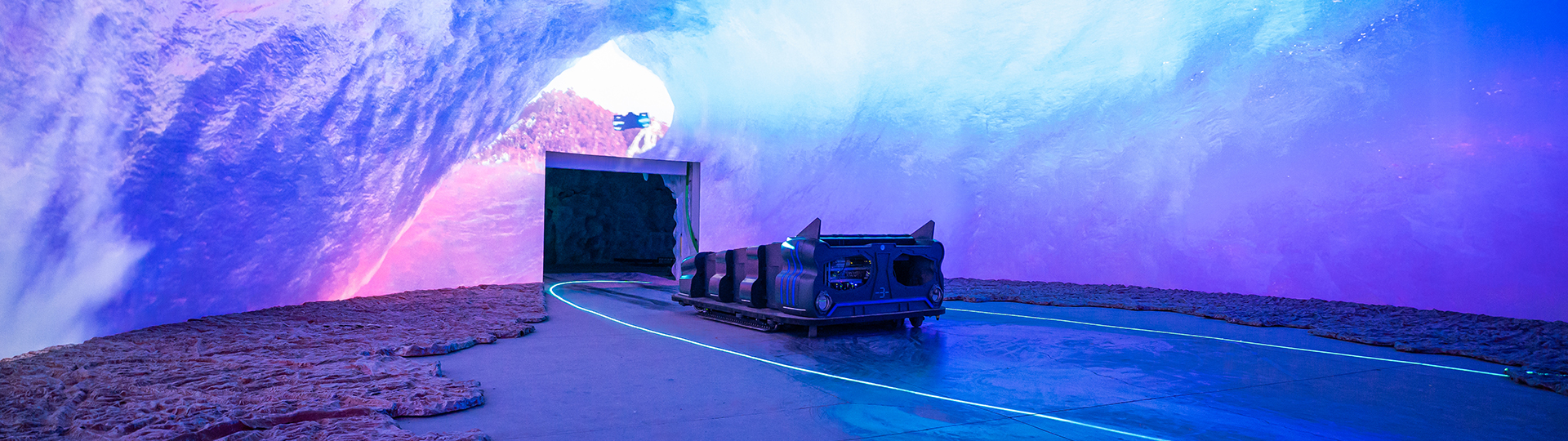 有別于傳統(tǒng)黑暗乘騎項(xiàng)目,擺脫傳統(tǒng)的軌道系統(tǒng),采用激光測(cè)距定位技術(shù),讓游客乘坐在無(wú)軌游覽車內(nèi),沿著既定故事路線進(jìn)行靈活穿梭體驗(yàn),充滿趣味刺激感。